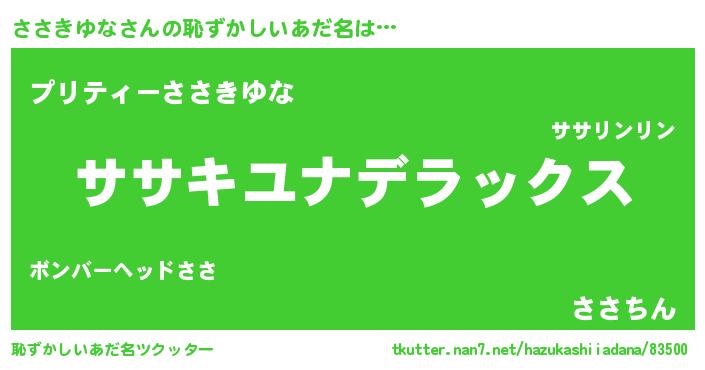 | ヘコむあだ名 | 『ささふぇ~』『ささきゆな(笑)』 |