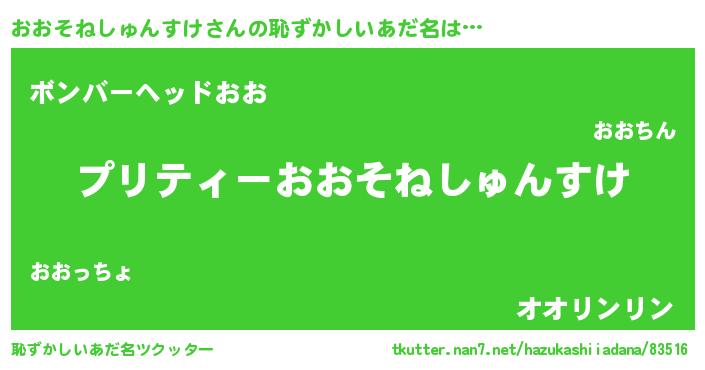 | 男性向けラノベタイトル風あだ名 | 『この素晴らしい世界におおそねしゅんすけを!』 |