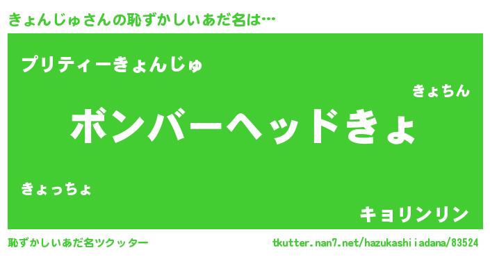 | 意味不明あだ名 | 『眠気覚ましガムきょんじゅ味』 |