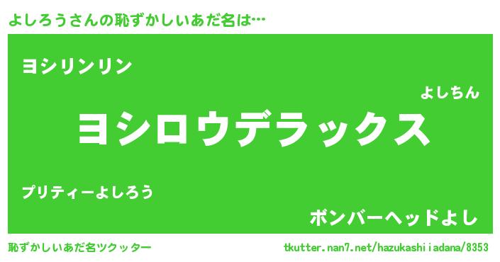| ヘコむあだ名 | 『よし太郎』『よしろう(笑)』 |