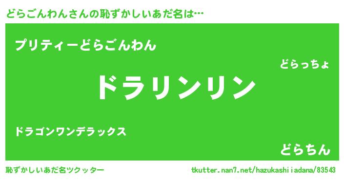 | 意味不明あだ名 | 『とにかく怪しいどらごんわん』 |