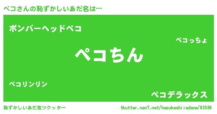 | 意味不明あだ名 | 『住所不定無職ペコ(85歳)』『永久保存ペコ』 |