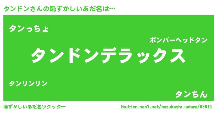 | 意味不明あだ名 | 『しいたけ科タンドン属』『自称タンドン』 |