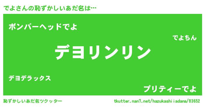 | 可愛いあだ名 | 『でよぷりん』『でっよぃー』 |