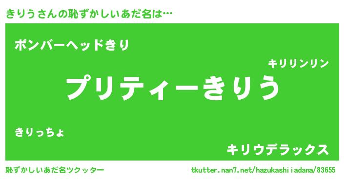 | 男性向けラノベタイトル風あだ名 | 『きりうの憂鬱』『キリウスレイヤー』 |
