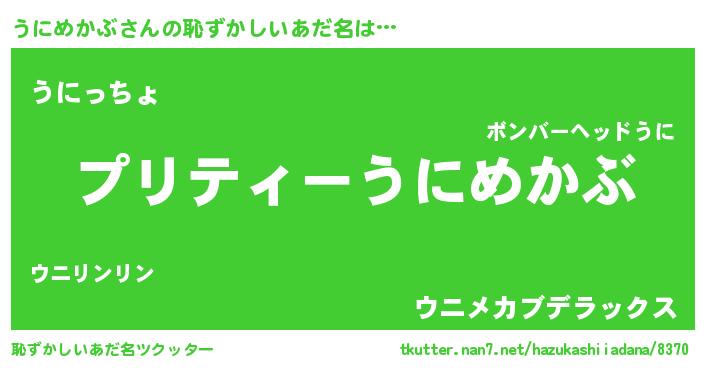 | ヒーロー風カッコイイあだ名 | 『スーパーウニメカブ』『魔戒騎士ウニ』 |