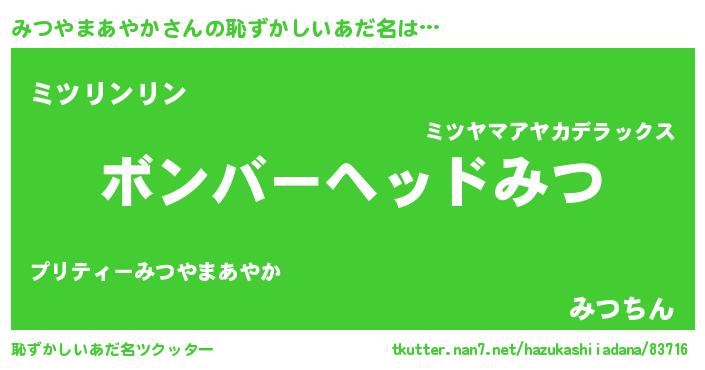 | ヒーロー風カッコイイあだ名 | 『正義の使者みつやまあやか』 |