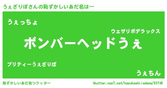| 男性向けラノベタイトル風あだ名 | 『この素晴らしい世界にうぇざりぽを!』 |
