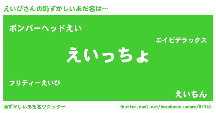 | ヘコむあだ名 | 『豆乳』『えいび(笑)』『えいぷりん』 |