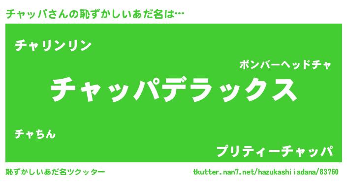 | ヒーロー風カッコイイあだ名 | 『ウルトラ戦士チャッパ』『魔戒騎士チャ』 |