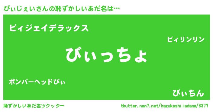 | ヘコむあだ名 | 『なまこ酢』『びぃじぇい(笑)』 |