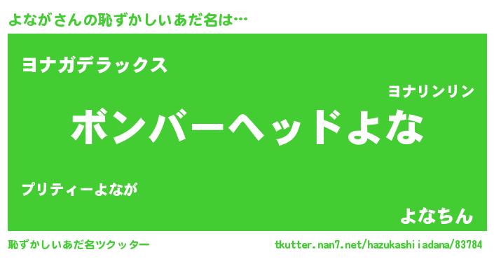 | 欧米人風あだ名 | 『ダニエルよなが』『ケンブリッジよなが』 |