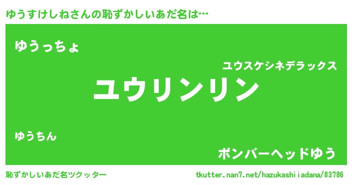 | ヒーロー風カッコイイあだ名 | 『暗黒騎士ユウ』『究極戦士ユウスケシネ』 |