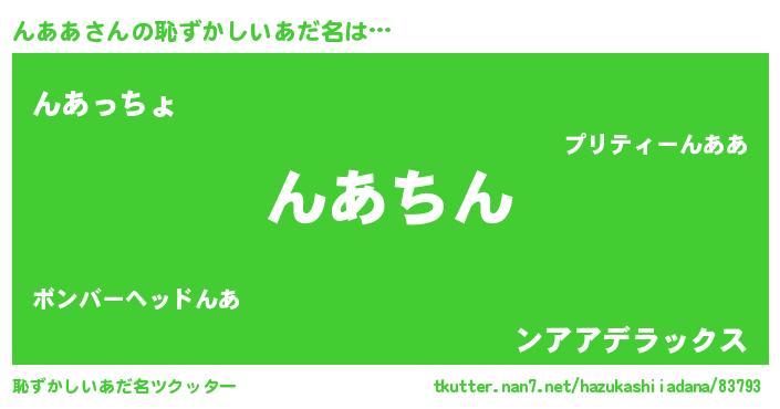 | 男性向けラノベタイトル風あだ名 | 『ンアアスレイヤー』 |