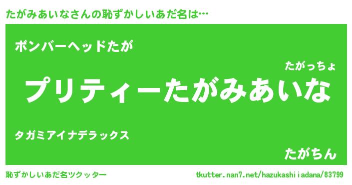 | 胡散臭い通販商品みたいなあだ名 | 『億万長者になれる霊験あらたかなお札…その名も「たがみあいな」』 |