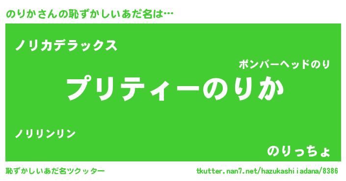 | ヒーロー風カッコイイあだ名 | 『スーパーノリカ』『究極戦士ノリカ』 |