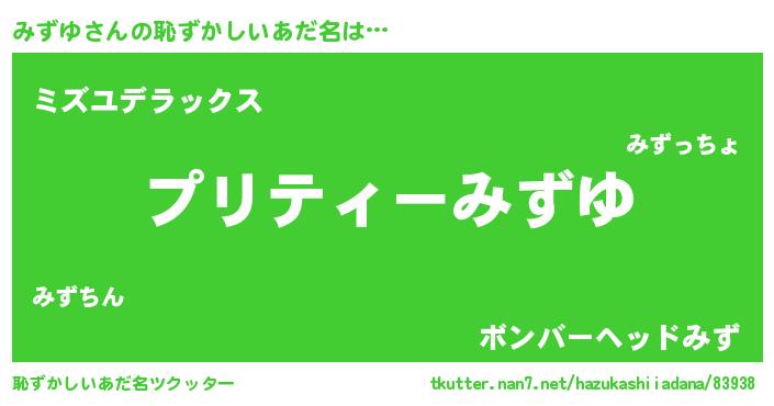 | 男性向けラノベタイトル風あだ名 | 『みずゆの憂鬱』『はたらくみずゆさま!』 |