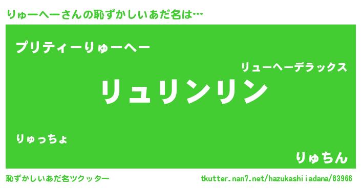 | ヒーロー風カッコイイあだ名 | 『暗黒騎士リュ』『スーパーリューヘー』 |