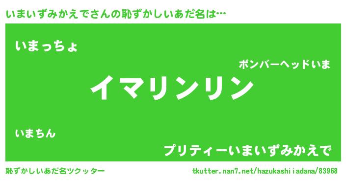 | 男性向けラノベタイトル風あだ名 | 『いまいずみかえでの嫁は女の子じゃないと思った?』 |