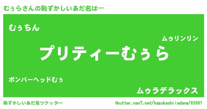 | ヘコむあだ名 | 『むぅもー』『むぅら(笑)』 |