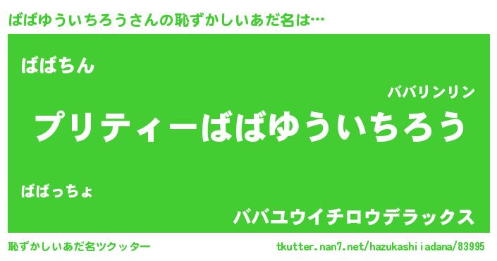 | ヘコむあだ名 | 『ばばもー』『ばばゆういちろう(笑)』 |