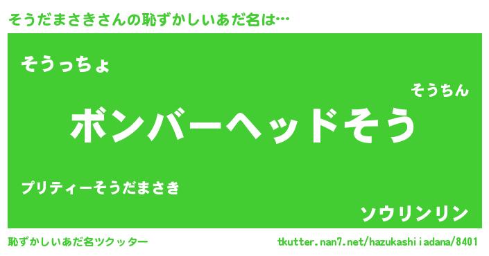 | ポケモン風あだ名 | 『ソックウザ』『ソウダダネ』 |
