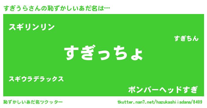 | 意味不明あだ名 | 『すぎうらフォーエバー』 |