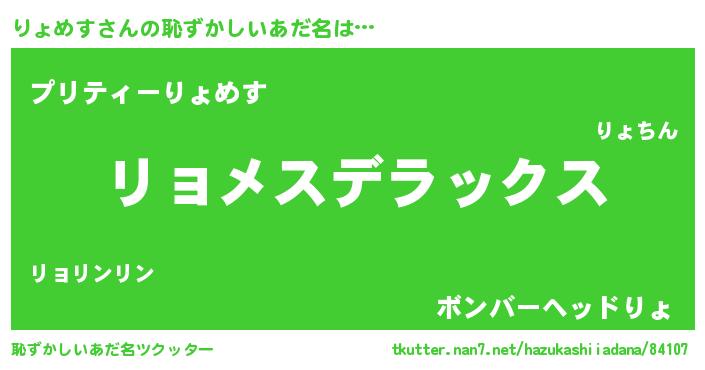 | ヘコむあだ名 | 『りょにー』『りょめす(苦笑)』 |