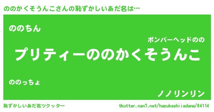 | 意味不明あだ名 | 『住所不定無職ののかくそうんこ(93歳)』 |