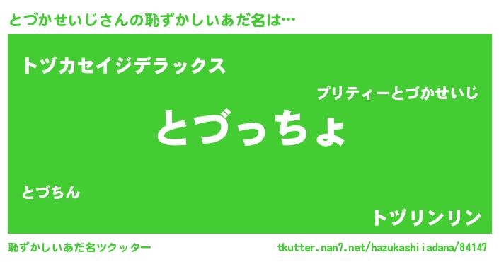 | 意味不明あだ名 | 『とづかせいじフォーエバー』 |