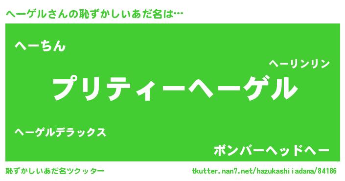 | ヒーロー風カッコイイあだ名 | 『スーパーヘーゲル』『ネオヘーゲル』 |