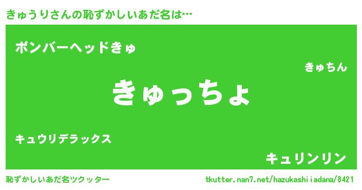 | 女子向けラノベタイトル風あだ名 | 『きゅうり伯爵の花嫁』『きゅうり恋絵巻』 |