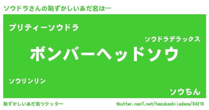 | ヘコむあだ名 | 『ソウにー』『ソウドラ(爆)』『豆乳』 |