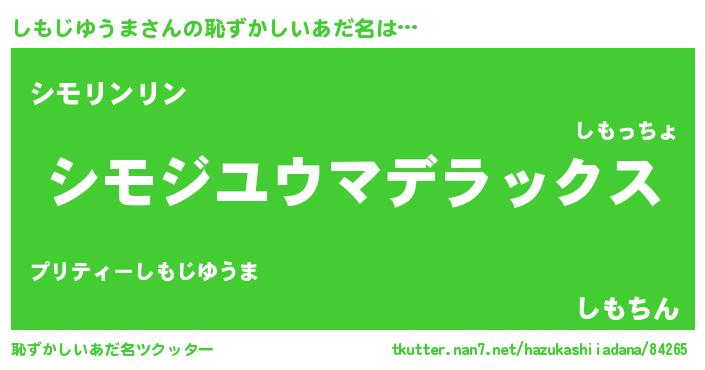 | 意味不明あだ名 | 『自称しもじゆうま』 |