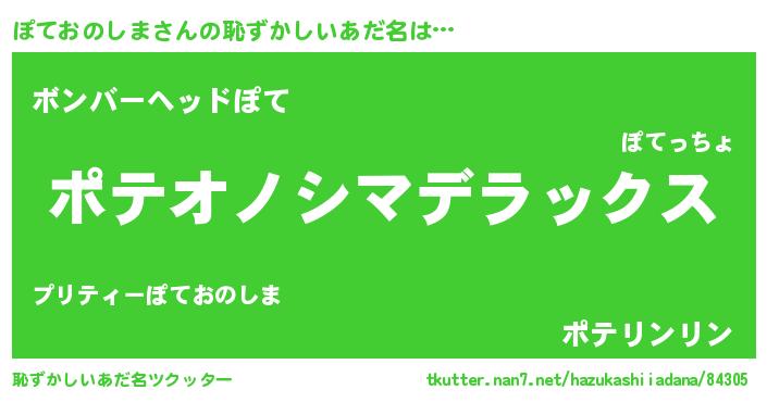 | ヒーロー風カッコイイあだ名 | 『仮面ポテダー』『愛の使者ぽておのしま』 |