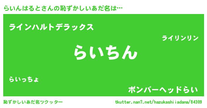 | ヘコむあだ名 | 『らいんはると(笑)』『らいっちょ』 |