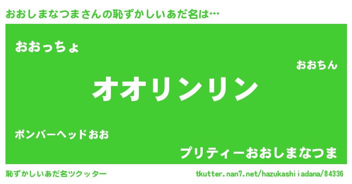 | 意味不明あだ名 | 『とにかく怪しいおおしまなつま』 |