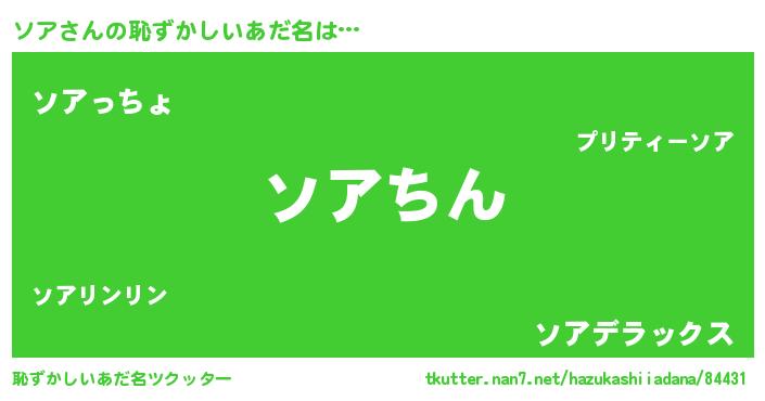 | 意味不明あだ名 | 『永久保存ソア』『ソアフォーエバー』 |