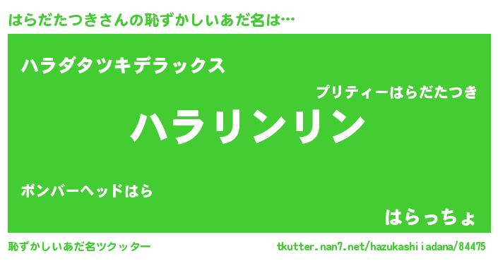 | ポケモン風あだ名 | 『ハラキング』『ヒハラダタツキ』 |