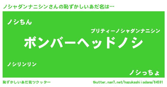 | 意味不明あだ名 | 『住所不定無職ノシャダンナニシン(47歳)』 |