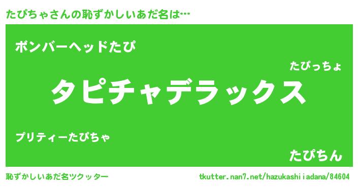 | ヒーロー風カッコイイあだ名 | 『仮面タピダー』『超時空戦士タピチャ』 |