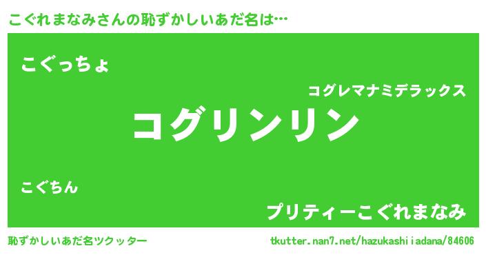| ポケモン風あだ名 | 『ヒコグレマナミ』『コグレダネ』 |