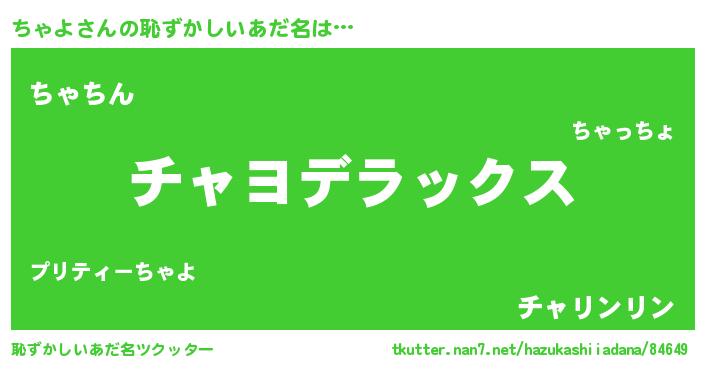 | ヒーロー風カッコイイあだ名 | 『仮面チャダー』『サイバー戦士チャヨ』 |