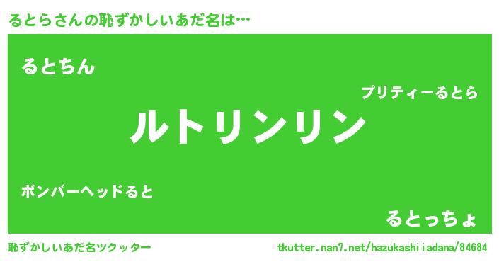 | ヘコむあだ名 | 『ると太郎』『るとら(笑)』 |