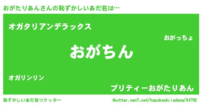 | 男性向けラノベタイトル風あだ名 | 『この素晴らしい世界におがたりあんを!』 |
