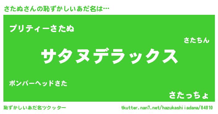 | 意味不明あだ名 | 『自称さたぬ』『たけのこ科さたぬ属』 |