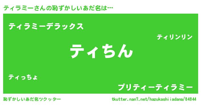 | ヘコむあだ名 | 『ティラミー(遠い目)』『ティにー』 |