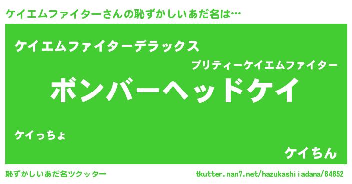 | ヘコむあだ名 | 『ケイエムファイター(震え声)』『酢こんぶ』 |
