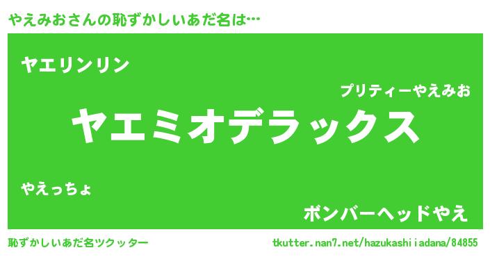 | 男性向けラノベタイトル風あだ名 | 『この素晴らしい世界にやえみおを!』 |