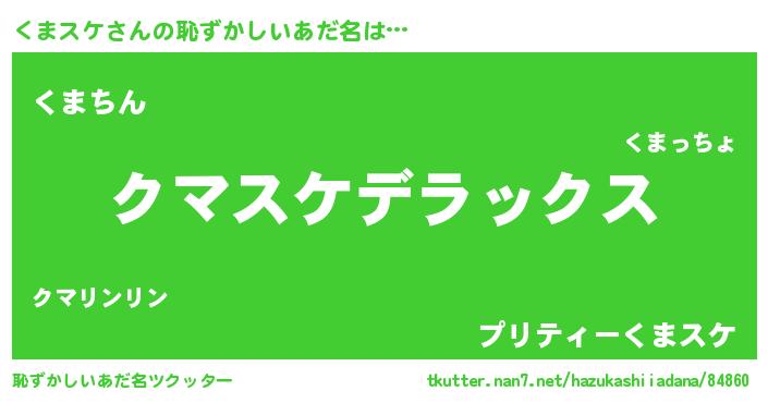 | 男性向けラノベタイトル風あだ名 | 『緋弾のクマスケ』『クマスケスレイヤー』 |